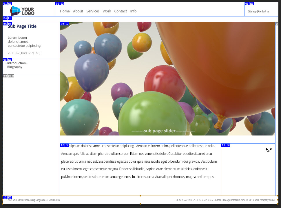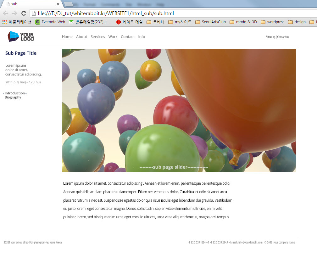 (최종 html 파일 링크. 메뉴와 슬라이더는 세팅되어 있지 않습니다)