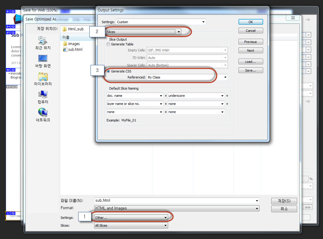 (아래와 같이 포토샵에서 슬라이스를 합니다)