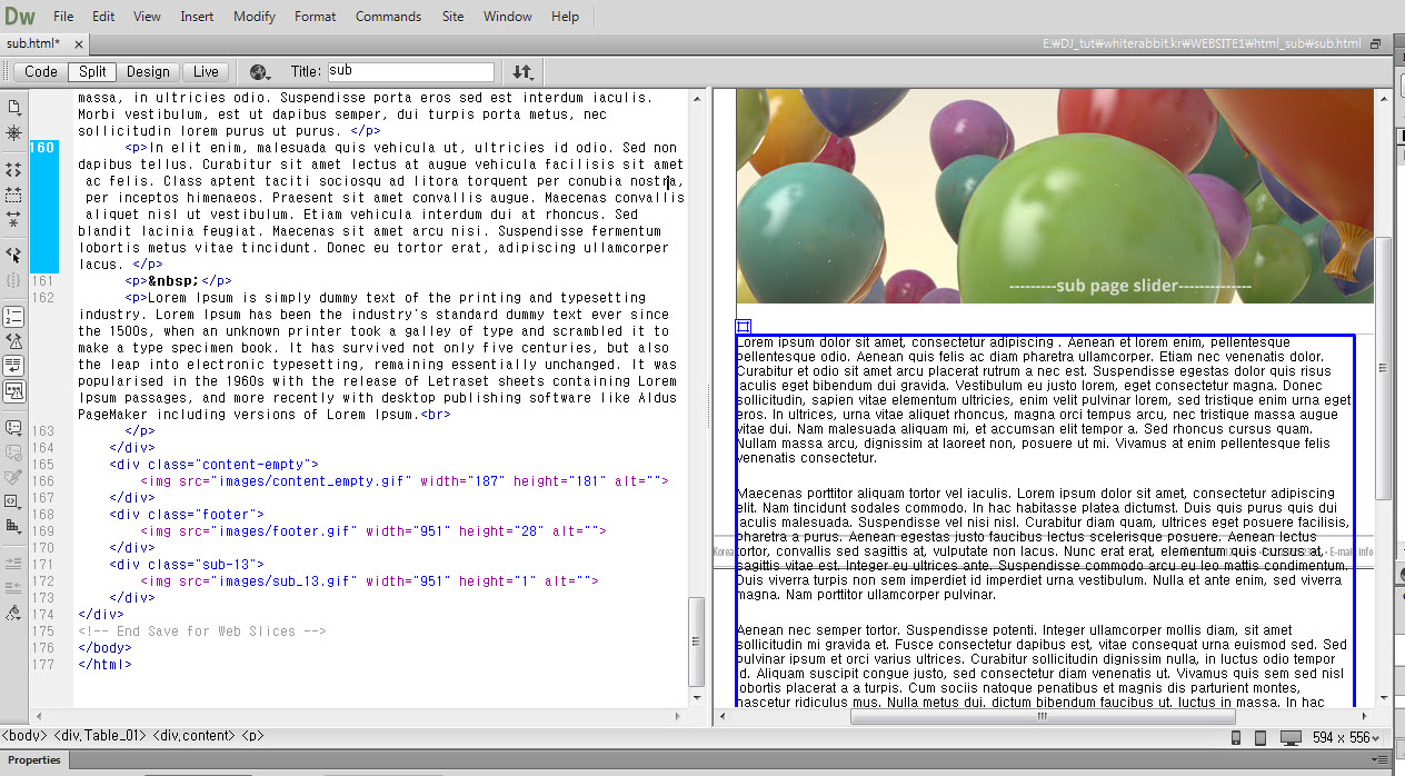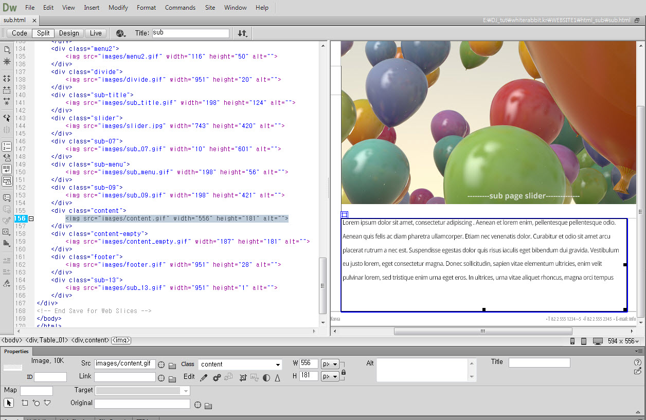 (중앙정렬, 메뉴, 슬라이더는 메인 홈 만들기 방법과 동일)