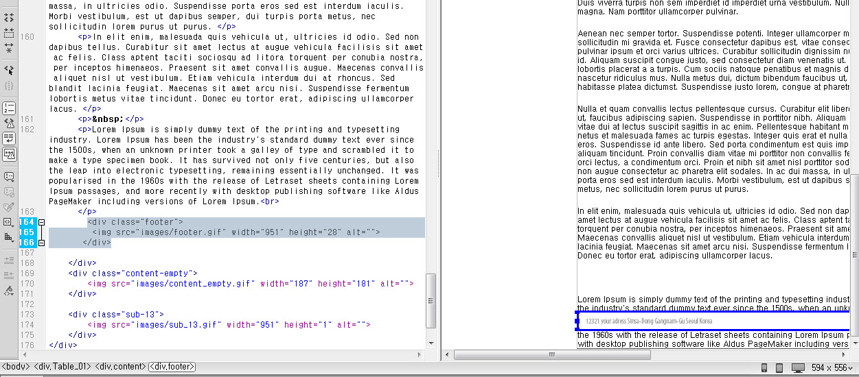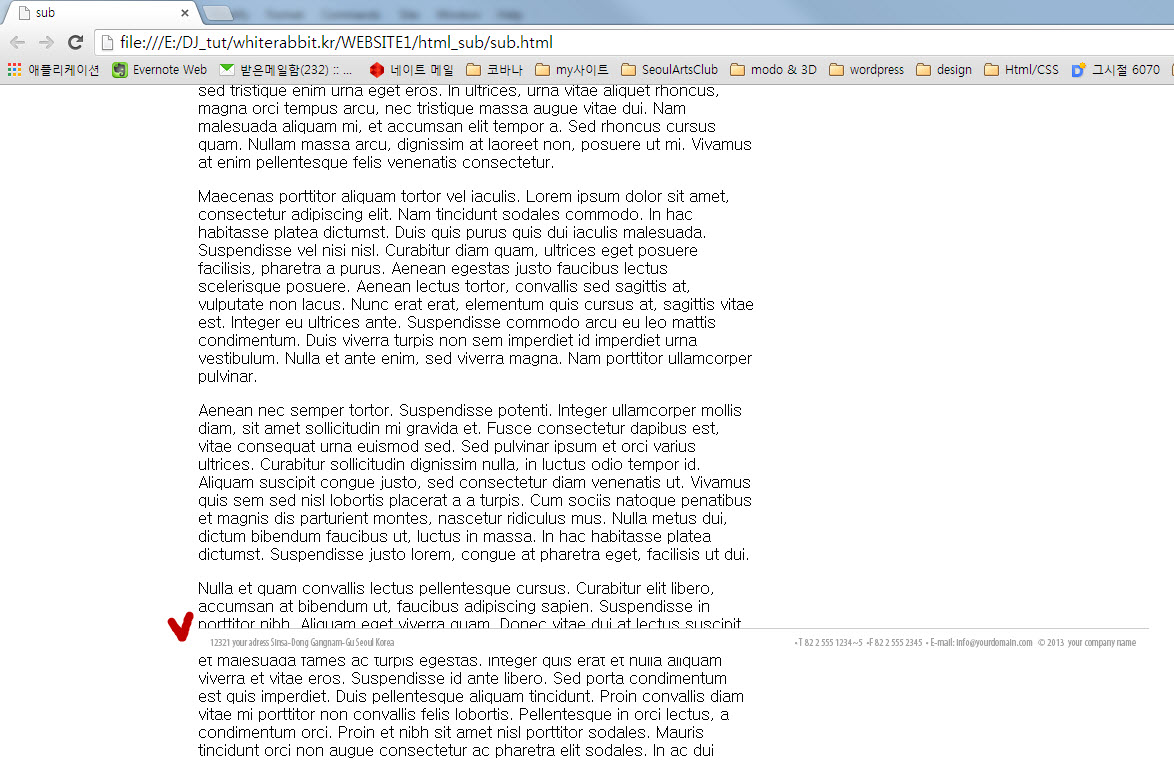 (이대로는 텍스트가 길면 아래 그림처럼 푸터가 본문 길이를 따라 흐르지 않게 됨)