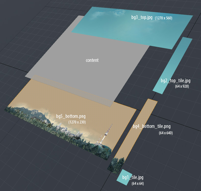 (html 구조. 차후에 메뉴,내용,푸터를 위한 div 태그가 더 추가되지만. BG를 만들기 위해서의 기본 구조는 아래와 같다.)