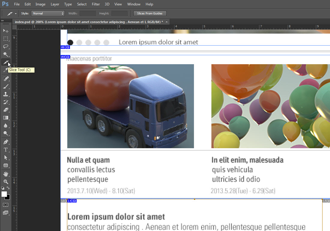 (슬라이스 툴로 요소들을 나눈다)