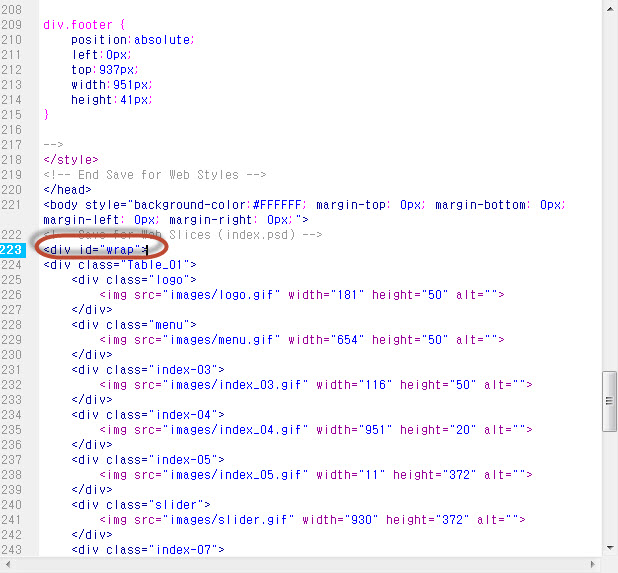 (아래 코드를 <div class=”Table_01″>의 앞에 넣는다)1