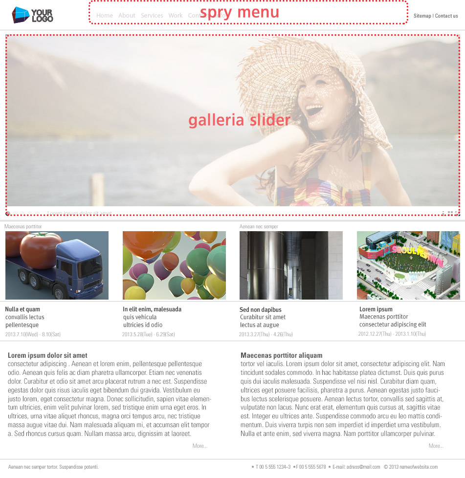 (구조 미리 보기. 메뉴에는 spry 사용, 메인 슬라이더에는 Galleria 사용